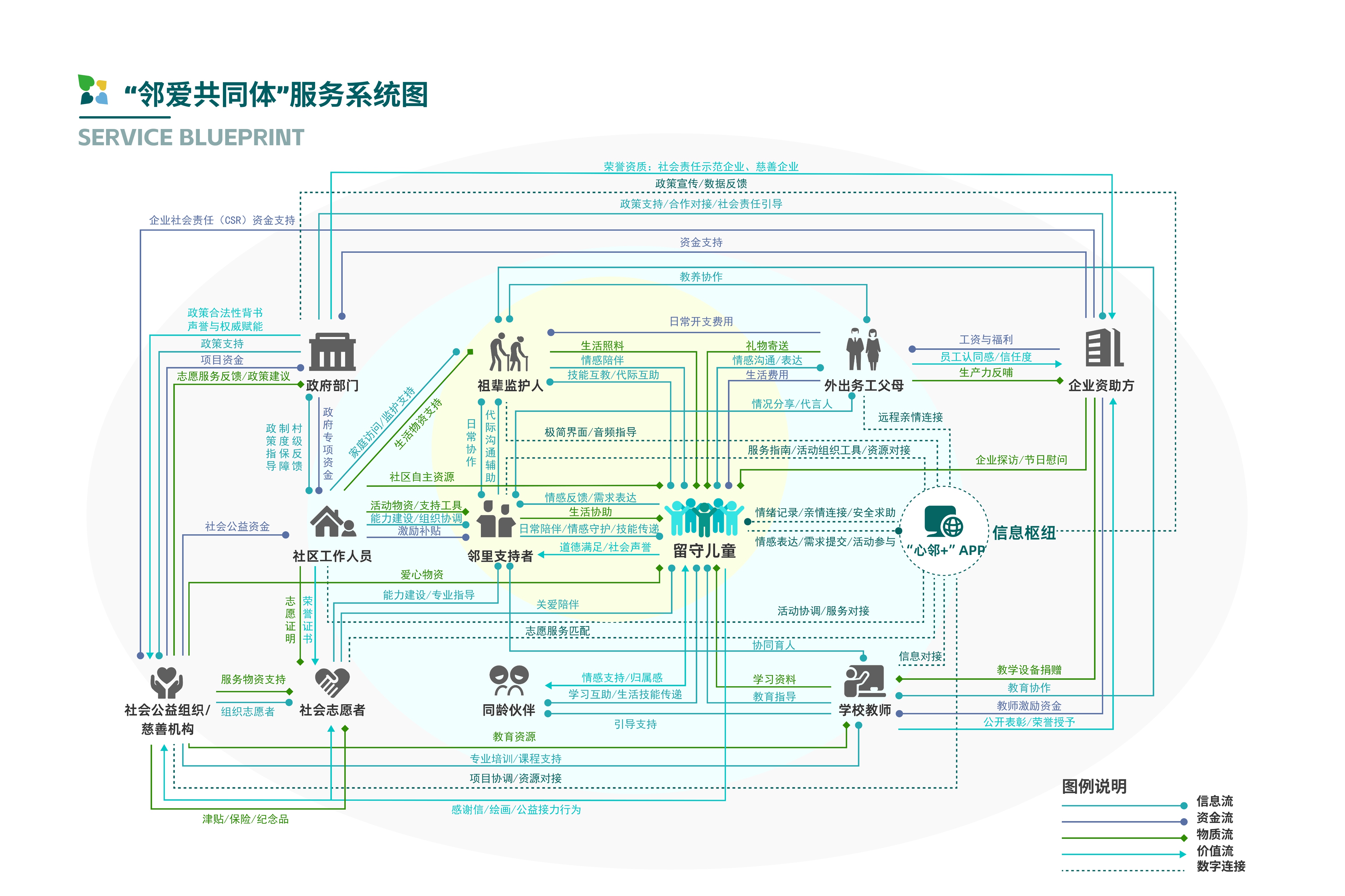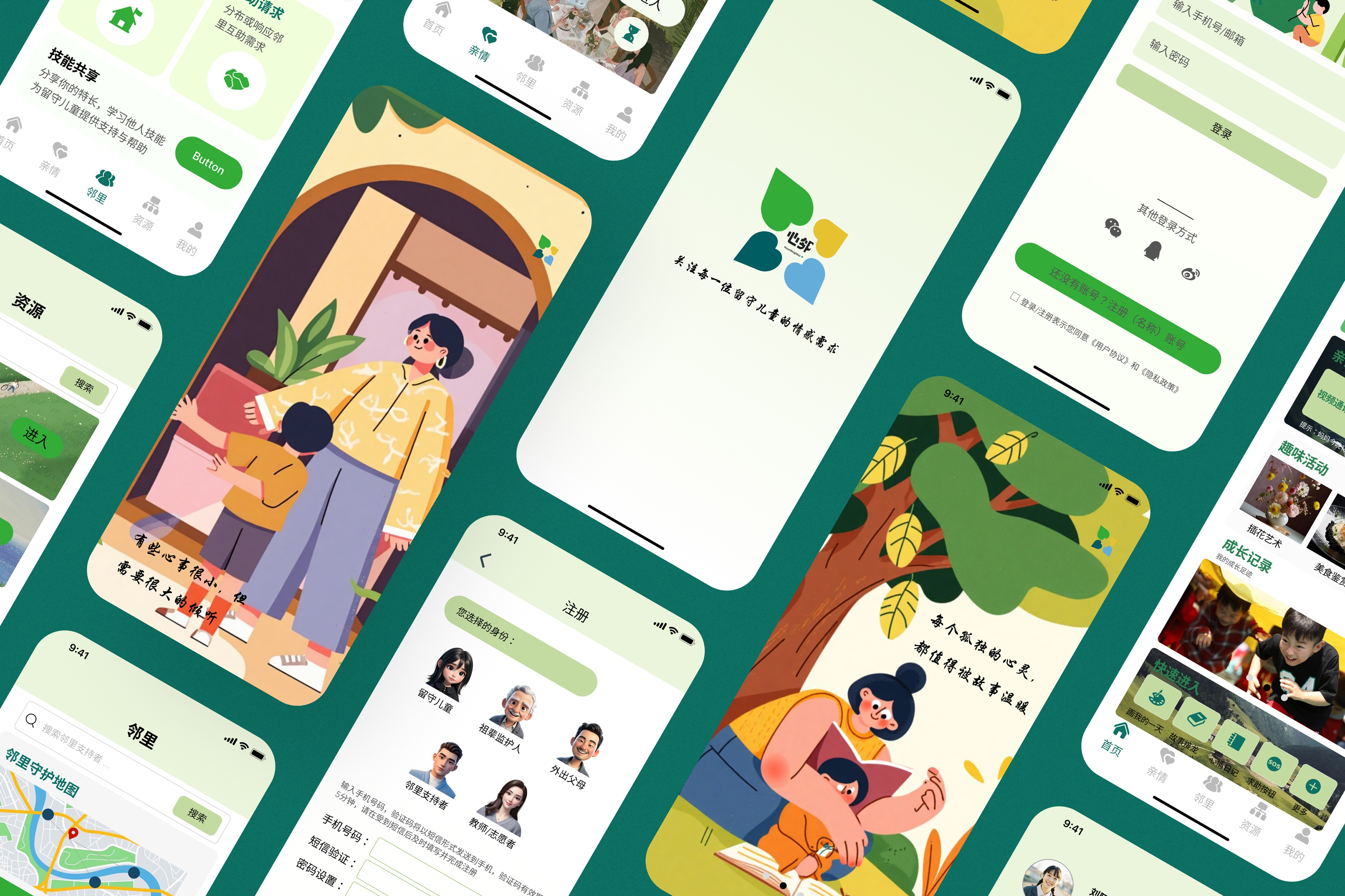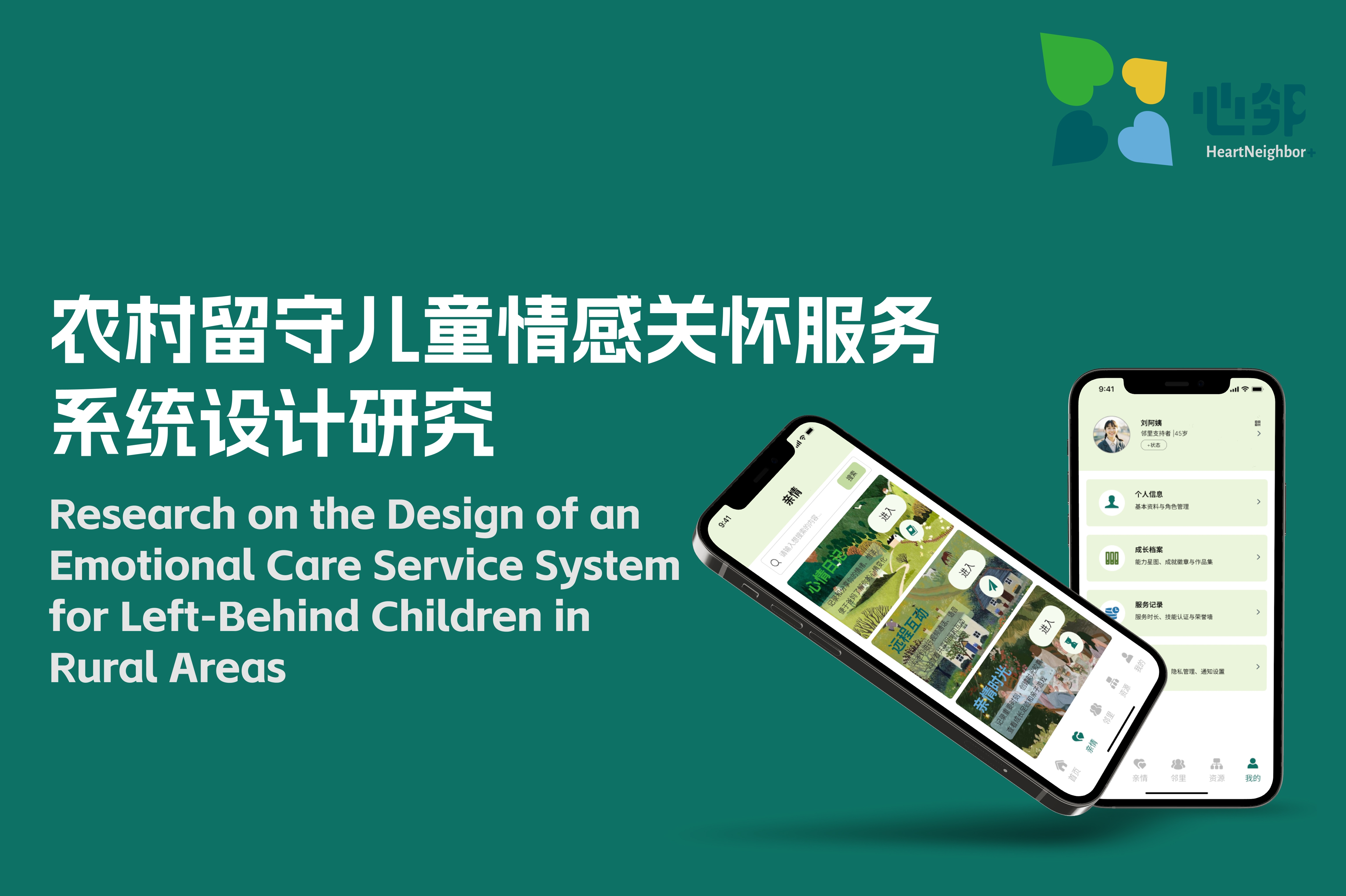 This design aims to build an emotional care service system for rural left-behind children, alleviating emotional deficiencies caused by parent-child separation. Combining localization, multi-stakeholder symbiosis, and sustainability principles, it activates neighborhood mutual assistance resources and constructs a collaborative network. The design creates a "Neighborhood Love Community" service system offline while developing the "Heart Neighbor+" APP to enhance resource connections online. Through this "offline service + online assistance" model, it ensures both the genuine warmth of emotional support and improves service accessibility and continuity.