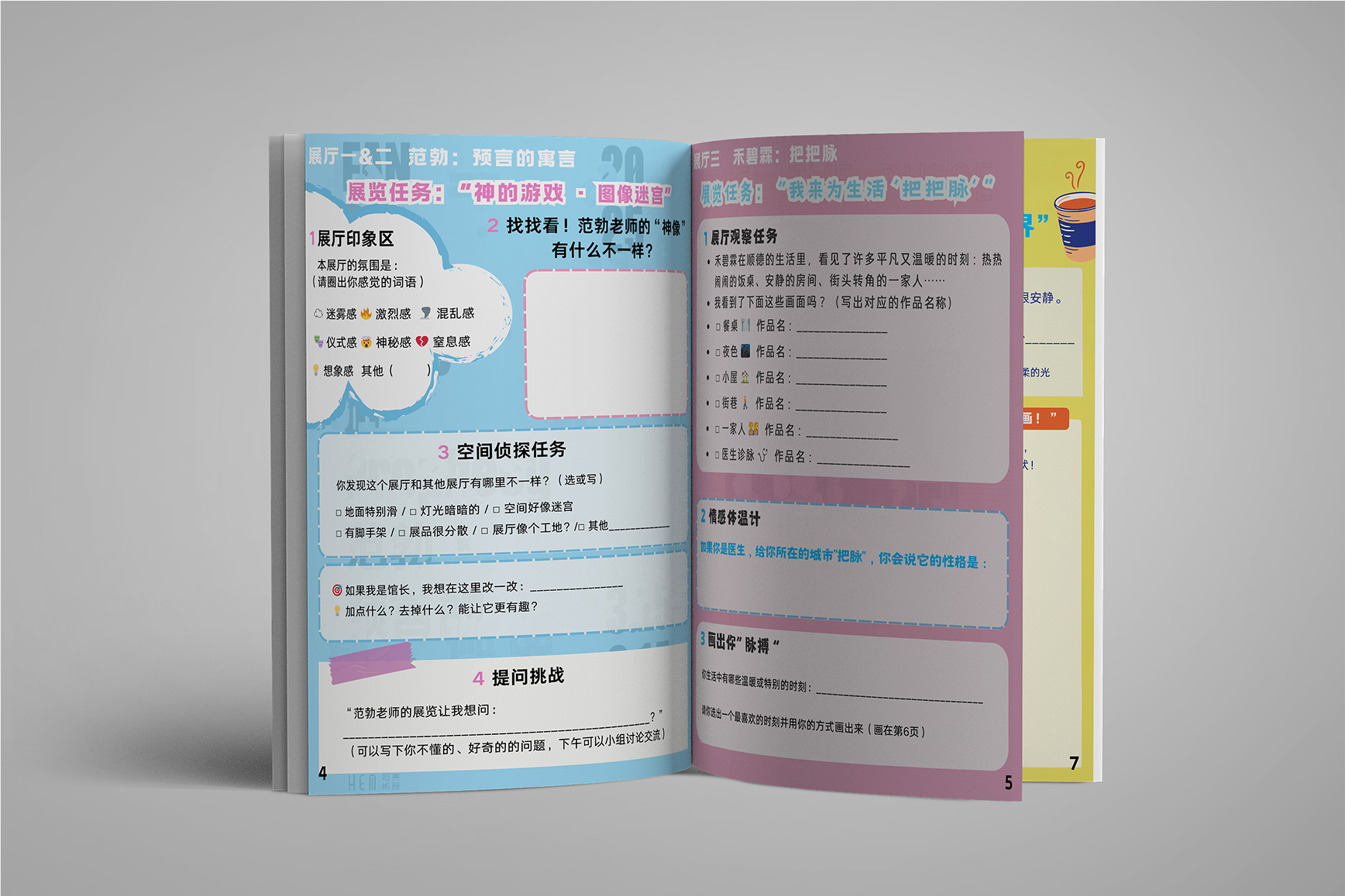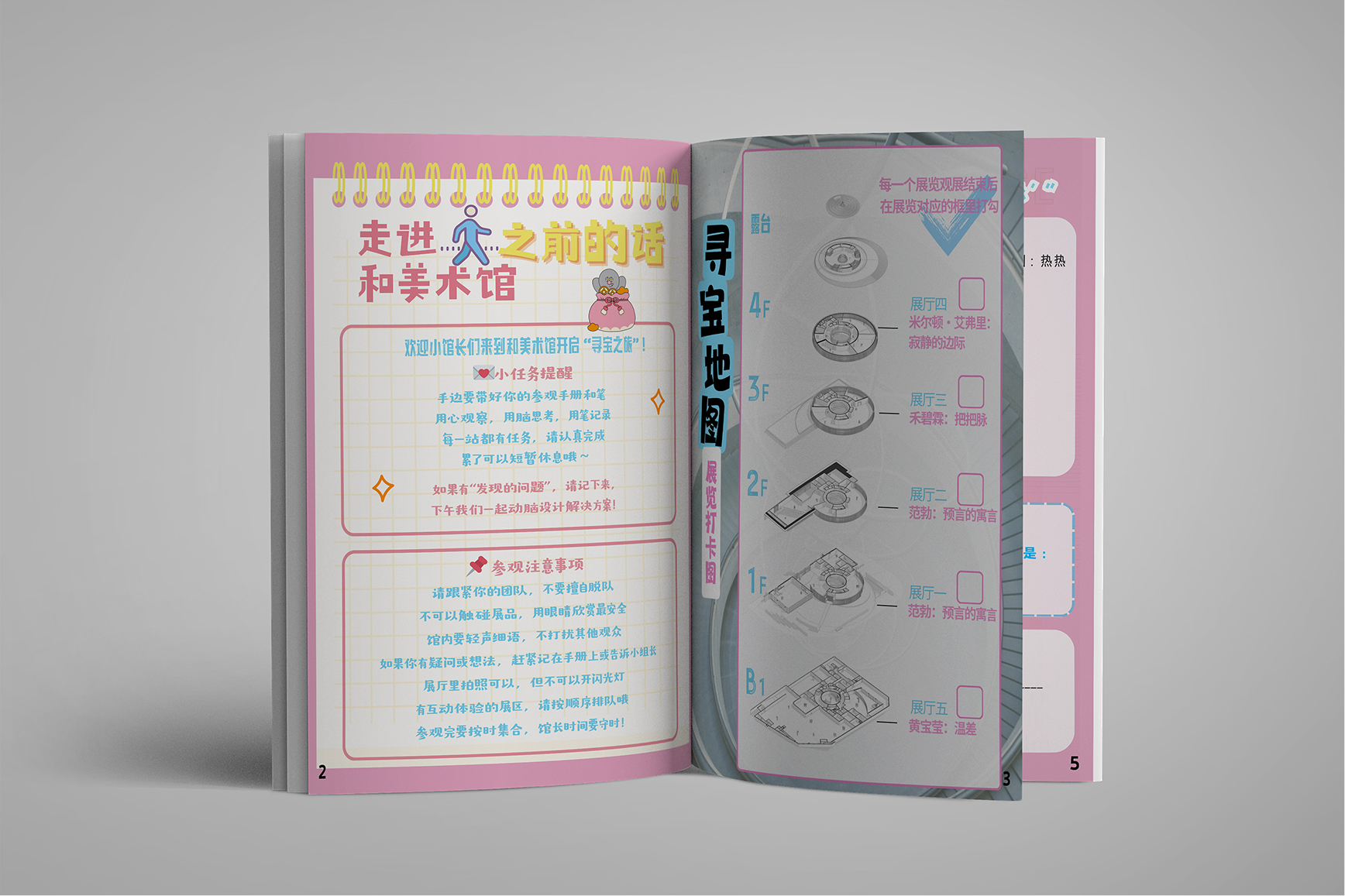 本作品围绕“艺术设计思维×和美术馆”主题,聚焦设计教育,通过艺术工作坊培养儿童的设计思维。作品包括儿童观展手册、学习手册等教育工具设计及工作坊授课过程记录,旨在通过和美术馆体验与互动式学习激发儿童的创意与问题解决能力。整体设计为儿童提供了一个富有启发性和趣味性的学习体验,促进在艺术活动中发现创新潜力。