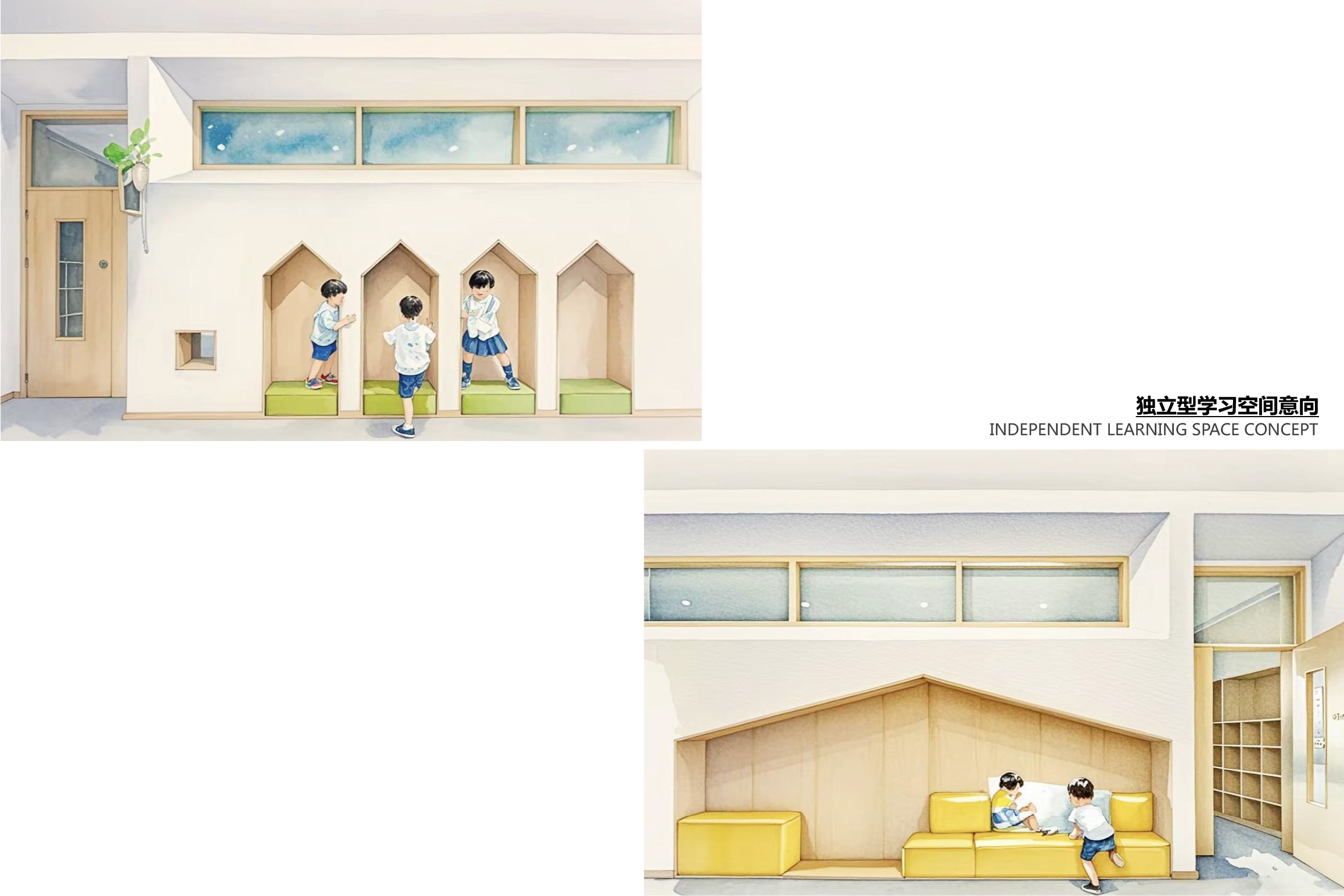 The design is guided by STEAM education principles, taking a planned kindergarten in Huangpu District, Guangzhou as an architectural case study. Centered on six core principles—child-oriented design, spatial hybridity, interactive experience, exploratory play, social development, and ecological intelligence—the project advances the concept of "space as teaching apparatus." This transforms architectural elements into STEAM education vehicles, aiming to create an enriched interdisciplinary learning environment for young children.