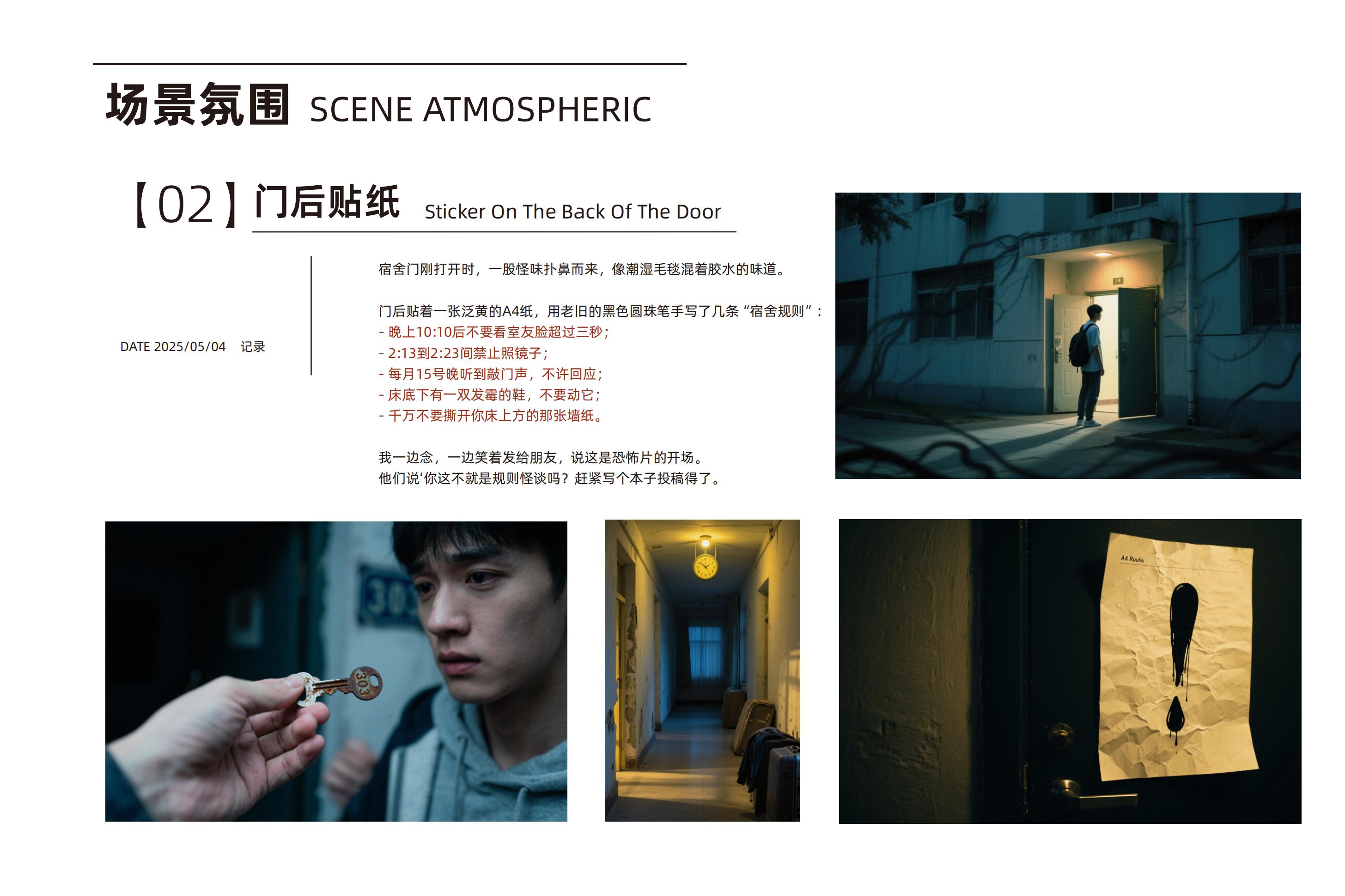 播客《13号楼入住日志》以第一人称录音日志形式,讲述京海大学大三学生李哲被调入老旧宿舍后的诡异经历。宿舍门后贴着一张写满奇怪规则的纸条,违规者将付出恐怖代价。随着一连串扭曲人脸、诡异敲门、镜中异象的发生,李哲逐渐发现,这间宿舍隐藏着不可名状的存在……